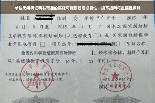 近年来,随着大众健康意识的不断增强,单位无疾病证明书在人们的健康关注中逐渐成为一个重要环节,这个看似简单的证明背后究竟隐藏着怎样的真相?本文将带您一探究竟,并深入探讨单位健康管理的重要性与实施策略。