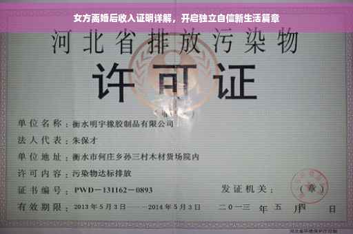 随着社会的进步和女性地位的提升,离婚后的女性在经济独立方面扮演着越来越重要的角色,收入证明作为展现个人经济能力的重要依据,对于离婚后的女性来说具有多重意义,本文将详细探讨女方离婚后的收入证明问题,旨在帮助女性朋友们更好地适应新生活,展现独立自信的风采。