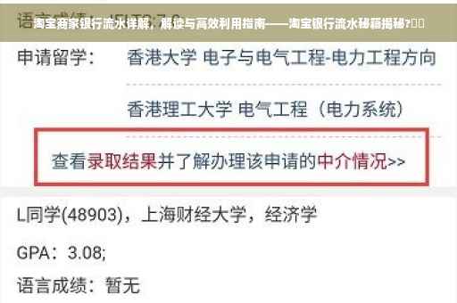 随着互联网电商的飞速发展,淘宝商家在经营过程中需要处理大量的资金流,银行流水作为记录这些资金流动的重要载体,对于淘宝商家而言具有至关重要的意义,本文将详细解读淘宝商家银行流水的内容,帮助商家如何正确解读银行流水,并探讨如何高效利用银行流水来优化经营策略。