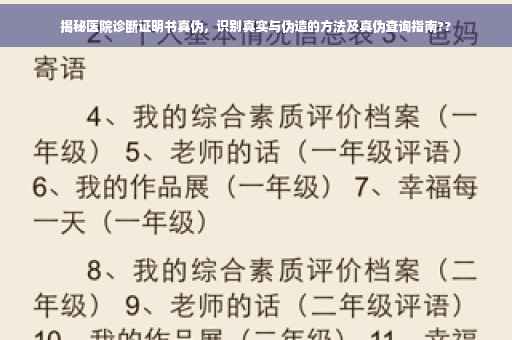 摘要:本文将介绍如何识别医院诊断证明书的真伪。通过了解诊断证明书的格式、内容、印章等方面,读者可以初步判断证明书的真实性。本文还将介绍医院诊断证明书真伪查询的方法,帮助人们避免受到伪造证明书的欺骗。阅读本文,将为您揭开医院诊断证明书真伪的神秘面纱。