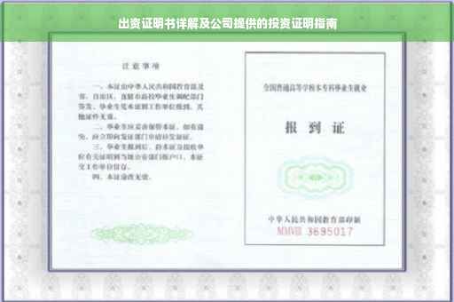 在当今社会,随着经济的发展和投资领域的繁荣,越来越多的人开始关注投资,希望通过投资实现财富的增值,在这个过程中,出资证明书和公司提供的投资证明成为了投资者关注的重要文件,本文将详细介绍这两者的概念、作用以及相关内容,帮助投资者更好地了解这些证明文件的含义和重要性。