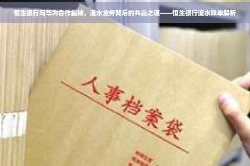 随着数字化浪潮的推进,银行业与科技的深度融合已成为时代发展的必然趋势,恒生银行与华为的强强联手引起了广泛关注,本文将深入探讨恒生银行与华为在流水业务领域的合作,解读双方合作背后的意义,分析合作带来的优势,以及展望未来的合作前景。