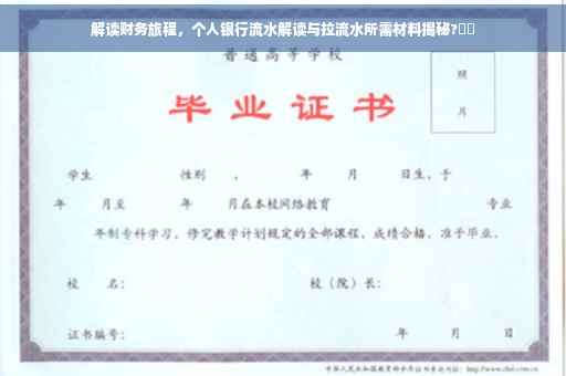 摘要:个人银行流水是解读个人财务旅程的重要工具。获取银行流水时,需携带有效身份证件和银行卡。通过银行流水,可以了解个人收支状况、消费习惯及财务状况变化。分析银行流水有助于合理规划财务,节省开支,实现财务目标。