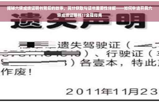 在当今社会,随着教育竞争的日益激烈,许多学生都在追求更高的成绩和更好的未来,在这个过程中,一张引人注目的成绩证明书往往成为衡量学生能力的重要标准之一,本文将探讨如何取得高分以及探讨6级成绩证明书的重要性,帮助读者更好地了解这一证书背后的故事。