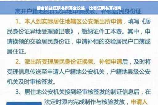撰写一份擂台挑战证明书是一项重要的任务,需要认真对待,本文详细介绍了擂台挑战证明书的基本要素、撰写步骤及注意事项,希望能为大家提供帮助,在撰写过程中,请遵循本文所述的要求和步骤,以确保所撰写的证明书真实、公正、客观、规范。