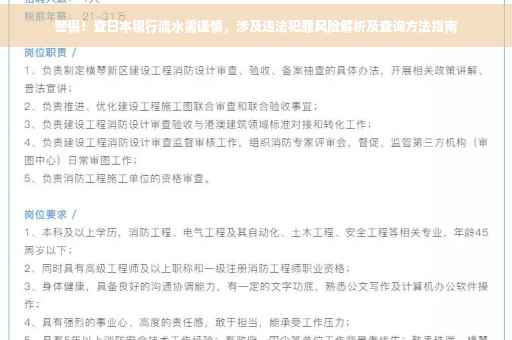 在当今数字化时代,随着跨境贸易、留学等活动的日益频繁,越来越多的人需要处理海外银行账户和流水,在处理这些事务时,我们必须保持高度的警觉,遵守相关法律法规,避免陷入违法犯罪的风险,本文将重点探讨查日本银行流水可能涉及的法律风险及应对措施。
