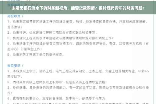 摘要:本文探讨了现代青年的财务新视角,特别是未婚无银行流水的群体是否能贷款购房的问题。文章指出,虽然传统观念中银行流水是贷款的重要条件之一,但现在不少金融机构开始关注其他信用评估方式,为未婚青年提供更多贷款选择。文章提醒未婚青年关注个人财务管理,为未来财务规划打下基础。