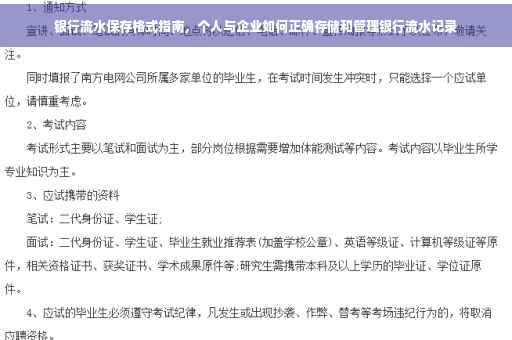 摘要:,,本文介绍了银行流水的保存格式,以及个人和企业如何正确存储和有效管理银行流水记录。文章详细解释了银行流水的重要性,并提供了关于如何妥善保存和管理流水记录的实用建议。通过遵循本文的指导,个人和企业可以更好地保护自己的财务信息安全,确保银行流水记录的准确性和完整性。