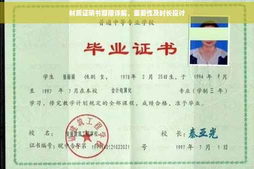 摘要:本文将详细解释材质证明书期限及其重要性。材质证明书是对材料质量和性能的权威证明,其期限因材料类型和用途而异。了解证书期限对于保证材料质量、遵守行业规定和避免风险至关重要。本文将指导读者理解不同材质证明书的期限,并强调其在实际应用中的重要性。