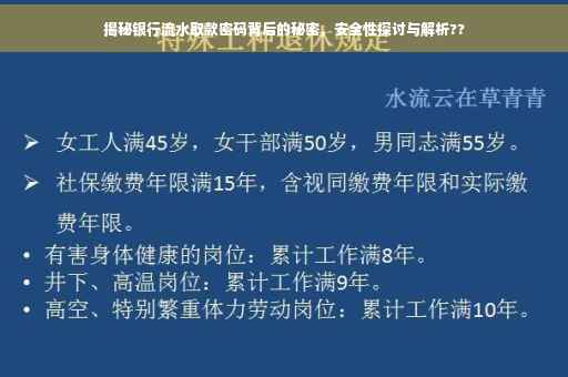 银行流水取款密码是为了保障银行账户资金安全而设置的一种重要措施,通过该密码,用户可以查询银行账户的流水信息,以及在ATM机上进行取款操作,设置该密码能有效防止未经授权的访问和资金盗取。