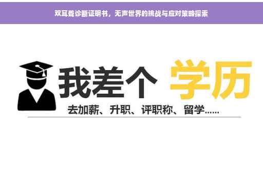 摘要:双耳聋诊断证明书详细阐述了无声世界的挑战及应对之道。患者双耳失聪,面临沟通难题和生活不便。通过诊断证明书,介绍了应对耳聋的有效方法,包括早期发现、及时干预、佩戴助听器、康复训练等。强调社会应关注聋人群体,提供无障碍环境,共同应对无声世界的挑战。