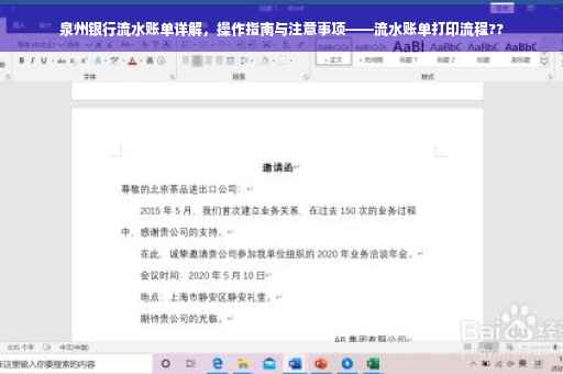 随着个人和企业金融业务的蓬勃发展,银行流水账单已成为评估个人经济实力和企业经营状况的关键依据,作为福建省内颇具规模的金融机构,泉州银行在其流水账单的获取和解读方面对个人和企业而言至关重要,本文将全面介绍泉州银行流水账单的获取方法、操作指南及注意事项,以便客户能够迅速了解并正确打印流水账单。