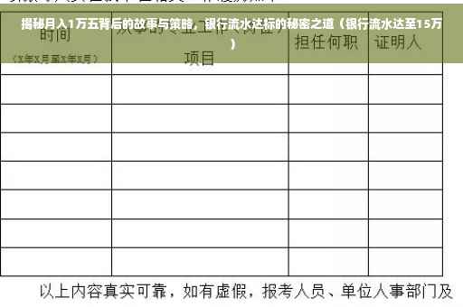 在当今社会,随着经济的迅猛发展和金融市场的日益繁荣,越来越多的人开始密切关注自己的收入状况,银行流水作为衡量个人经济实力和信用状况的关键指标之一,对于个人的发展具有至关重要的作用,本文将深入剖析银行流水达标的秘诀,揭示月入一万五背后的故事与策略,让我们一同探索如何在这个充满挑战与机遇的世界中,提升自己的收入水平。