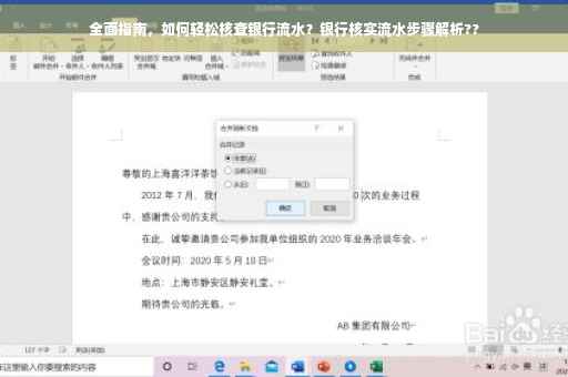 摘要:本篇全面指南将教你如何轻松核查银行流水。内容包括了解银行流水的重要性,掌握核查银行流水的具体步骤和注意事项。通过本文,你将学会如何正确核对自己的银行流水,确保账户安全。