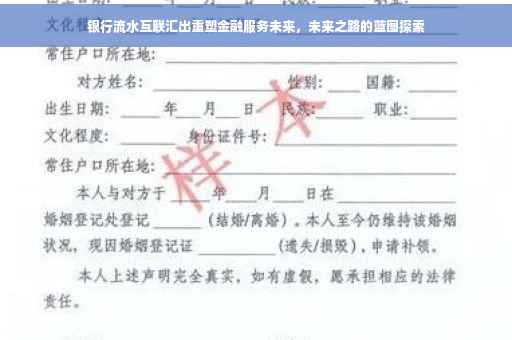 随着科技的飞速发展和数字化时代的到来,银行业正经历着前所未有的变革,银行流水互联汇出作为一种新型的金融服务模式,正逐渐崭露头角,引领银行业迈向更加便捷、高效、智能的未来,本文将深入探讨银行流水互联汇出的概念、特点、优势以及发展前景,并探究其对金融服务行业的影响。