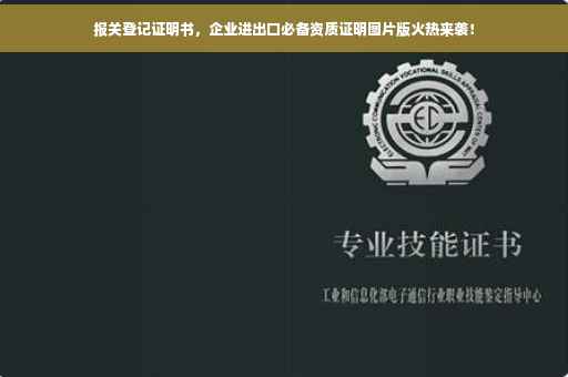 摘要:报关登记证明书是企业进行进出口活动的必备资质证明,相当于企业的"通行证"。该证明书的图片通常包含企业的基本信息、注册编号及有效期等重要信息。企业通过获取此证书,能够合法地进行进出口贸易活动,促进企业的国际化发展。