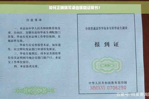 摘要:本文介绍了如何撰写退宿医院证明书。该证明书是一份重要的文件,需要准确、清晰地表述患者的退宿情况。文章指出,退宿医院证明书应包含患者的基本信息、住院期间的治疗情况、退宿原因以及医生的建议等内容。撰写时需注意格式规范、语言简洁明了,以确保证明书的真实性和有效性。