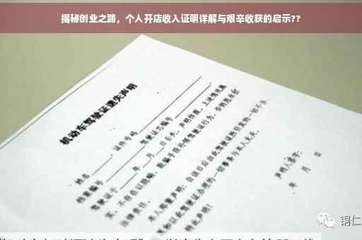 摘要:本文将介绍个人开店收入证明的重要性及其开具过程,同时揭示创业之路的艰辛与收获。通过本文,读者将了解如何准备充分、应对各种挑战,并在创业过程中实现自我成长和价值提升。文章将指导读者如何开具个人开店收入证明,并强调在创业过程中坚持不懈、灵活应变的重要性。