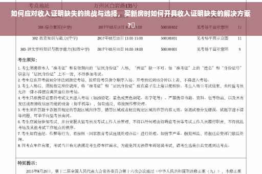 摘要:面对购买新房时缺乏收入证明的挑战,需要冷静应对并做出明智的选择。解决这一问题的方法并非无解,可以通过多种方式获取收入证明。可提供其他经济证明材料,展示稳定的收入来源,或者与开发商协商灵活的支付方案。在缺乏收入证明的情况下购买房产,务必谨慎决策,确保自身财务状况稳健,避免不必要的经济压力。