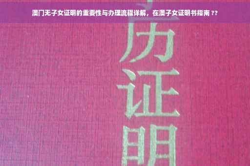 摘要:在澳门地区,无子女证明书对于在澳子女来说具有重要意义,可用于落户、入学、财产继承等事务。办理流程包括准备相关证件、前往公证处办理等步骤。本文将详细介绍无子女证明书的重要性及办理流程,帮助在澳人员了解并顺利办理该证明。