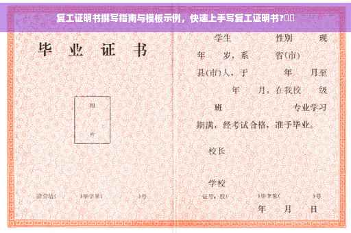复工证明书是证明员工已获得允许返回工作岗位的重要文件,它通常包括员工姓名、工作岗位、公司名称、复工时间、健康状况等关键信息,撰写复工证明书时,需确保内容的真实性和准确性,以便企业及相关部门顺利核实员工的健康状况和复工情况。