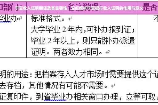 随着全球化的发展,跨国交流和合作日益频繁,翻译工作变得越来越重要,在诸多翻译领域中,收入证明的翻译尤为关键,它不仅关乎个人权益,还涉及跨文化交流的准确性,本文将围绕“宁夏收入证明翻译”这一主题展开,帮助大家了解收入证明翻译的重要性、技巧及注意事项。