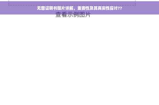 摘要:本文将介绍无罪证明书图片及其重要性。通过解析无罪证明书图片的真实性,强调其在法律领域的重要性。无罪证明书是证明个人清白、维护合法权益的必备文件。本文将帮助读者了解无罪证明书的作用和重要性,并引导大家正确对待和使用无罪证明书图片。