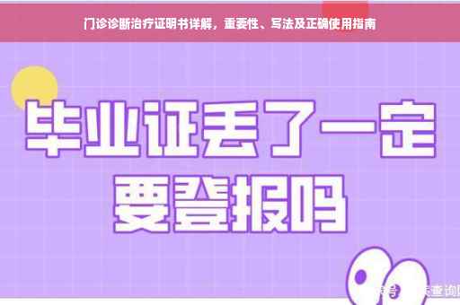 门诊诊断治疗证明书在医疗保障、病情记录、休假依据以及司法证据等方面具有重要意义,患者应正确使用并妥善保管证明书,以确保自身权益得到保障,了解门诊诊断治疗证明书的获取流程也是必不可少的,希望通过本文的介绍,能提高公众对门诊诊断治疗证明书的认知,使更多人受益。