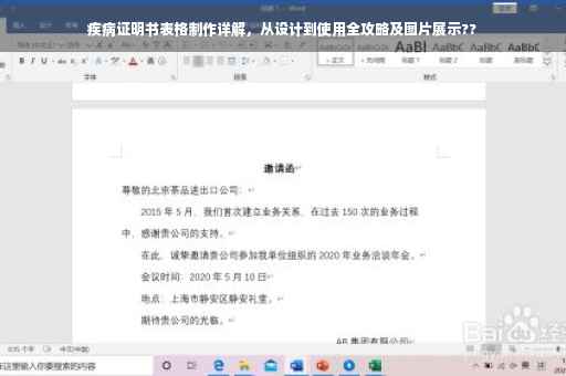在现代医疗管理中,疾病证明书表格扮演着至关重要的角色,作为医疗机构常用的文书之一,它不仅为患者请假和报销提供依据,更是医生评估病情和指导治疗的重要参考,本文将全面介绍疾病证明书表格的制作流程,以帮助读者了解其从设计到使用的全攻略。