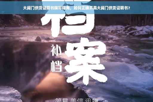 摘要:关于大阀门供货证明书,其格式和内容应包含供货方信息、产品详细信息、购买方信息以及证明文件的签署和日期等要素。具体撰写时,需明确列出大阀门的型号、规格、数量等,并由供货方签署并盖章,注明日期。此证明书主要用于证明购买方从供货方购买了大阀门产品,并确认产品的真实性和质量。字数控制在100-200字以内。