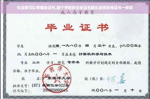 你需要明白一个问题,学化妆的话,毕业证书和学历的毕业证书是有很大区别,如果是上的培训学校学的化妆,那么毕业证书就是属于该校颁发的,证明是从这个学校毕业的,但是这个毕业证书,不是国家颁发的,所以只能是证明你从哪个学校毕业的,而化妆师资格证书是国家劳动局统一颁发的,说明你的化妆水平达到了一定程度,我是在万影传奇化妆学校学的化妆,考高级化妆师资格证书国家要求要21岁,明年我就回学校去考了。