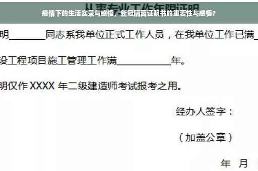 突如其来的新冠疫情,打破了全球原本平静的生活秩序,在这场抗击疫情的战斗中,隔离成为了防控疫情的重要手段之一,随着疫情的蔓延,越来越多的人被迫进入隔离状态,以保护自己和他人的健康安全,本文将围绕新冠隔离证明书这一主题,记录作者在疫情下的生活实录与感悟。