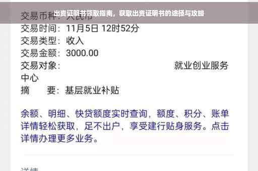摘要:关于出资证明书的领取攻略,您可以在公司财务部门或相关金融机构获取出资证明书。具体领取地点可能因地区和公司而异,您可以通过咨询所在公司的财务部门或相关机构了解详细信息。出资证明书是证明您对公司投资的重要文件,请务必妥善保管。
