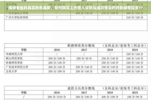 在当今社会,随着经济的发展和竞争的加剧,越来越多的人渴望了解企业家和老板的工作收入证明背后的真相,毕竟,老板的工作收入证明不仅关乎个人的经济状况,更是其社会地位和商业成功的体现,本文将深入探讨老板的工作收入证明背后的各个方面,揭示成功背后的财务真相。