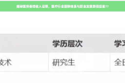 在当今社会,医疗行业的发展日益迅猛,对专业人才的需求也日益增长,医师作为医疗行业的核心力量,其收入水平及职业发展路径备受关注,本文将围绕医师委培收入证明这一主题,深入探讨医师的收入水平、职业发展及教育培训等方面,带您揭开医疗行业的薪酬体系与职业前景。