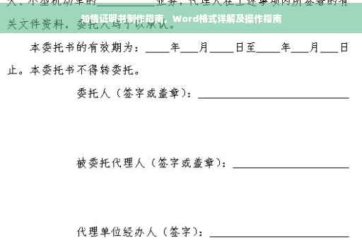 随着信息的快速发展和普及,人们对于各类信息的获取需求日益增长,在某些特定场合,如医疗、法律、金融等领域,知情证明书的签署显得尤为重要,本文旨在向大家介绍知情证明书的概念、作用、Word格式书写规范及相关注意事项,以帮助大家正确书写和认识知情证明书。