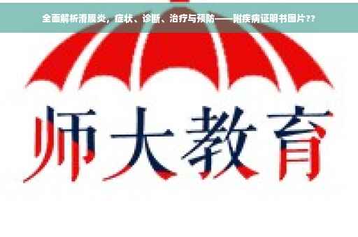 摘要:本文介绍了滑膜炎疾病,包括其症状、诊断、治疗和预防措施。主要描述了滑膜炎的症状表现,如关节肿胀、疼痛等;诊断方法包括体格检查和影像学检查等;治疗方法包括药物治疗、物理治疗和手术治疗等;预防措施主要包括避免关节过度劳损和加强锻炼等。本文还附带了滑膜炎疾病证明书图片,以便读者更好地了解该疾病。