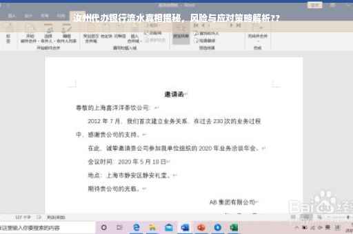 近年来,随着金融行业的快速发展,银行业务办理需求日益增长,银行流水作为证明个人或企业经济往来的重要文件,其办理需求尤为突出,汝州地区,作为河南省的一个重要城市,其银行业务量亦相当庞大,在汝州,不少企业和个人因各种原因需要代办银行流水,本文将围绕汝州代办银行流水这一主题,探讨其背后的真相、风险及应对之策。