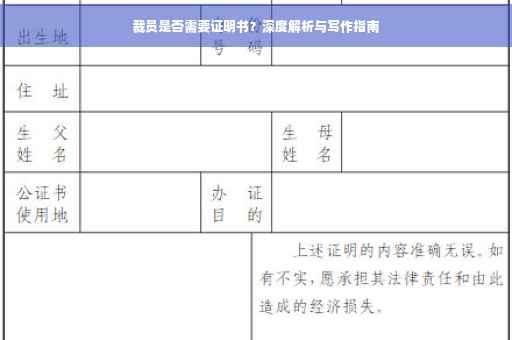 文章深度解析裁员是否需要证明书的问题。文章指出,裁员是否需要证明书取决于公司的政策和法律规定。文章还探讨了裁员证明书的作用,包括证明员工被解雇的原因和时间等。文章建议,在裁员过程中,公司应该遵守相关法律法规,确保员工的权益得到保障。本文探讨了裁员是否需要证明书的问题,涉及公司政策和法律规定。文章指出裁员证明书的作用,强调公司应遵守法律法规保障员工权益。