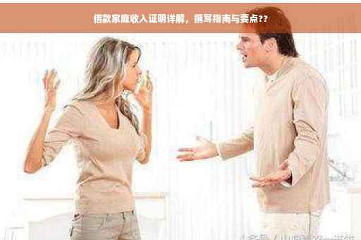 摘要:本文将详细介绍借款家庭收入证明的撰写方式。内容包括如何准确记录家庭成员的收入情况,如何提供相关的证明材料,以及注意事项等。本文旨在帮助借款家庭正确准备和提交收入证明,以便顺利申请贷款。阅读本文,您将了解借款家庭收入证明的重要性及如何规范撰写。