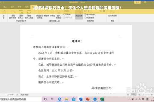 银行流水作为个人经济生活中的重要证明文件,对于申请贷款、信用卡以及办理某些业务时具有关键作用,有时候由于各种原因,我们的银行流水可能并不理想,甚至影响到我们的信用评级和业务的办理,如何补救银行流水呢?本文将为您详细解析。
