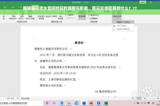 在当今金融行业快速发展的背景下,银行流水成为了人们生活中不可或缺的一部分,银行流水监控时间作为保障金融安全的重要手段,对个人和社会都具有重要影响,本文将深入探讨银行流水监控时间的内涵、目的以及其对个人和社会的影响,同时分析银行流水监控时间的操作实践与挑战。