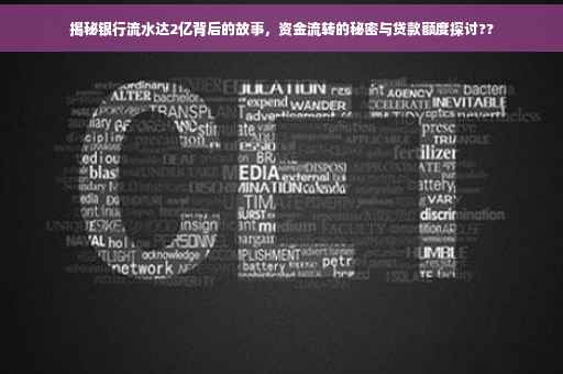 摘要:,,揭秘银行流水达2000万的背后故事,揭示资金流转的秘密。巨额银行流水背后可能涉及企业运营、投资、贸易等多个领域。关于能贷款多少,取决于多种因素如信用评级、利率等。本文将探讨银行流水的重要性及其背后的资金流转真相,为读者提供深入了解。