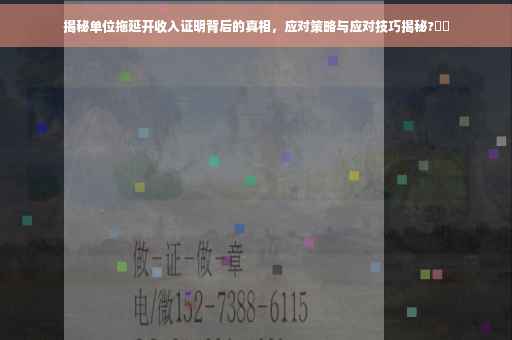 摘要:单位拖延开收入证明背后可能存在多种原因,如内部流程繁琐、管理问题或避免承担某些责任等。面对这种情况,个人应保持冷静,了解具体原因并与单位沟通协商。应对策略包括明确沟通、寻求上级领导协助、保留证据等。本文旨在揭示单位拖延开收入证明背后的真相,并提供有效的应对策略,帮助个人顺利解决问题。