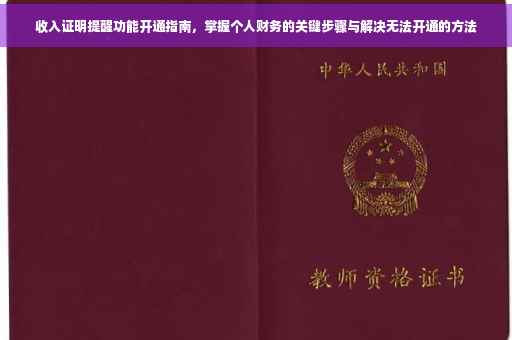 在现代社会,随着经济的发展和个人财务的日益复杂,越来越多的人开始关注个人财务管理的重要性,在这个背景下,如何有效地管理自己的收入,确保资金的合理使用和有效积累,成为了许多人关注的焦点,本文将详细介绍如何开通收入证明提醒功能,帮助读者更好地掌握个人财务,实现财务自由。
