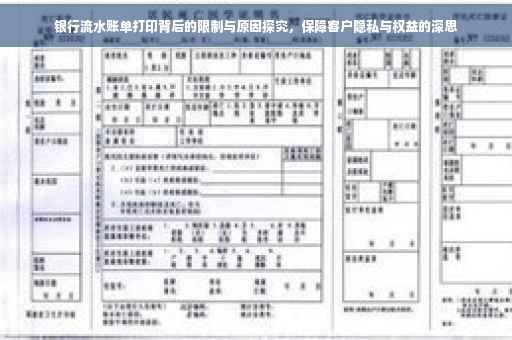 银行流水背后体现的是银行与客户之间的信任关系,在这一信任机制下,银行应提供更加便捷、高效的服务,以满足客户需求,银行有义务保护客户隐私和信息安全,而客户则应对银行保持信任,对于银行不能随意打印客户流水的规定,旨在保护客户隐私和信息安全,维护银行与客户的信任关系,通过共同努力,我们才能实现金融行业的健康发展。