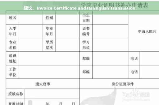 在国际贸易中,为确保全球范围内的认可,发票证明书通常使用英文形式呈现,常见的中文和英文对照如下: