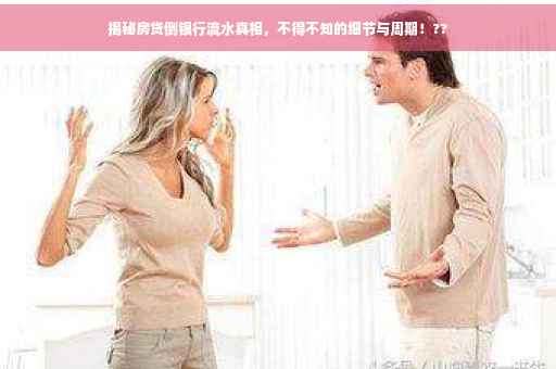 摘要:本文揭露了房贷倒银行流水的真相,让读者了解这一过程中需要注意的关键问题。房贷倒银行流水是一种贷款方式,但其中存在风险。本文将介绍房贷倒银行流水的真相,包括所需时间和可能遇到的问题。提醒读者在申请房贷时要谨慎选择,避免陷入不必要的风险。