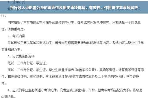 银行收入证明盖公章是办理金融业务、签证申请等事务中的重要环节,希望通过本文的介绍,大家能更好地了解相关事项,确保业务的顺利办理。