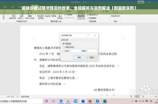 诊断证明书是医疗领域不可或缺的重要文件之一,它不仅是患者病情的权威证明,也是医疗纠纷处理的重要依据,本文将为您详细解析诊断证明书背后的故事,从诊断到证明的全过程逐一解读,并附上实例解读,让您更深入了解诊断证明书的重要性及实际应用价值。